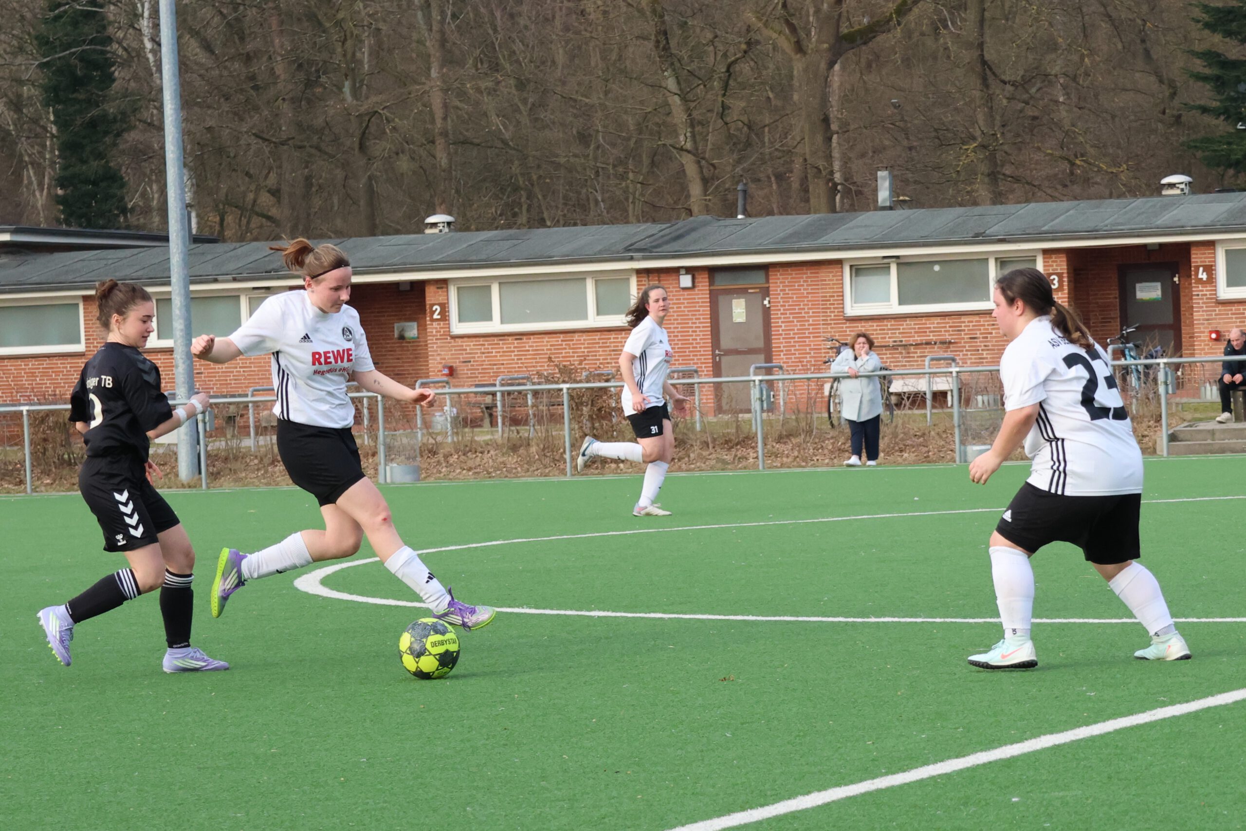 Verlustpunktfrei reisten die Gäste an. Sie zeigten auch schnell, dass es sich aus ihrer Sicht nicht ändern sollte. Bereits früh legten sie zwei Treffer vor (0:1, 3. und 0:2, 6.). Zwar konnte unser Team durch Wiktoria Sander den Anschluss herstellen (1:2, 15.), aber noch vor der Pause legten die Gäste weiter nach (1:3, 40.).