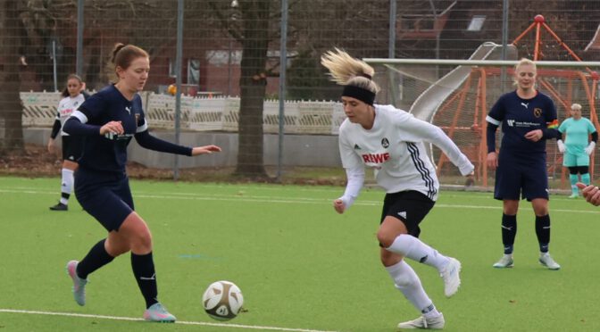 Die Partie verlief weitgehend ausgeglichen, auch wenn unsere Spielerinnen leichte Feldvorteile hatten. Nach einer Ecke gingen aber die die Gastgeberinnen in Führung (1:0. 14.). Mit einem Schuss von der Strafraumgrenze, der neben dem Pfosten einschlug, stellte Milena Wittig den Ausgleich her (1:1, 39.). Wenig später die verhängnisvolle Szene, die gerade erst wieder zurückgekehrte Sarah Kalkstein verletzte sich schwer am Knie 40.). Da es einige Zeit dauerte bis der Krankenwagen kam, der sie ins Krankenhaus bringen sollte, schickte der Schiedsrichter die Spielerinnen vorzeitig in die Kabinen.